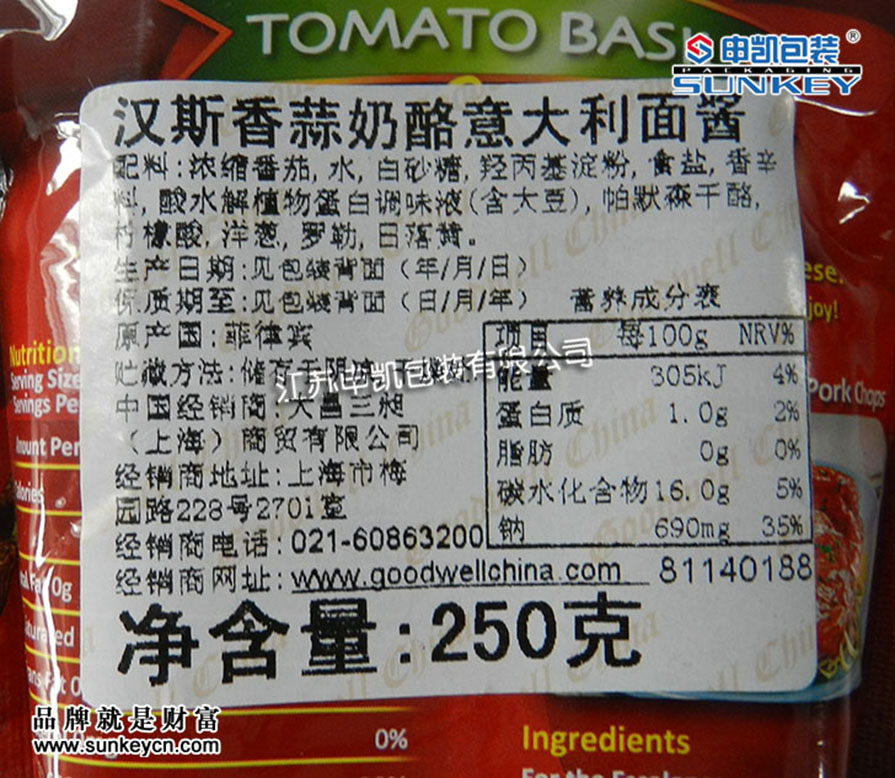 傳統口味意大利面醬包裝