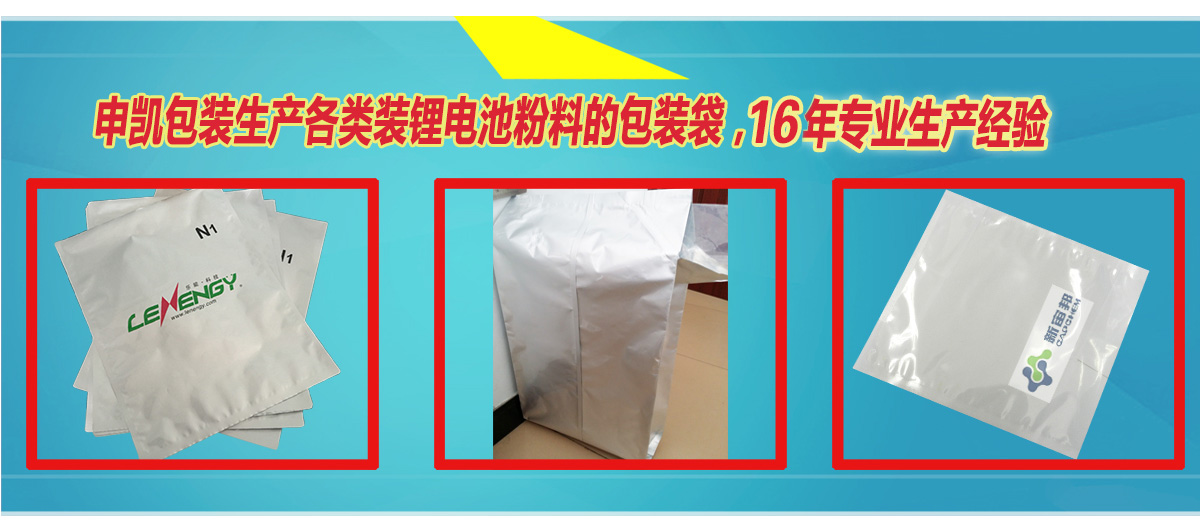 申凱包裝鋰電池粉末,正極材料鋁箔包裝袋定制生產(chǎn)廠家,定制批發(fā)各種功能性鋁箔包裝袋,可小批量定購試樣,也可以聯(lián)系技術(shù)客服索取樣品。鋰電池粉末,正極材料鋁箔包裝袋定制生產(chǎn)廠家